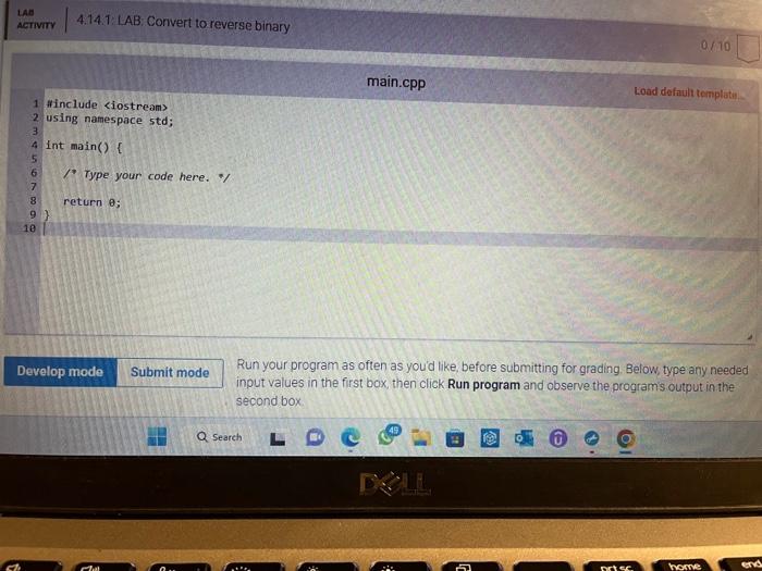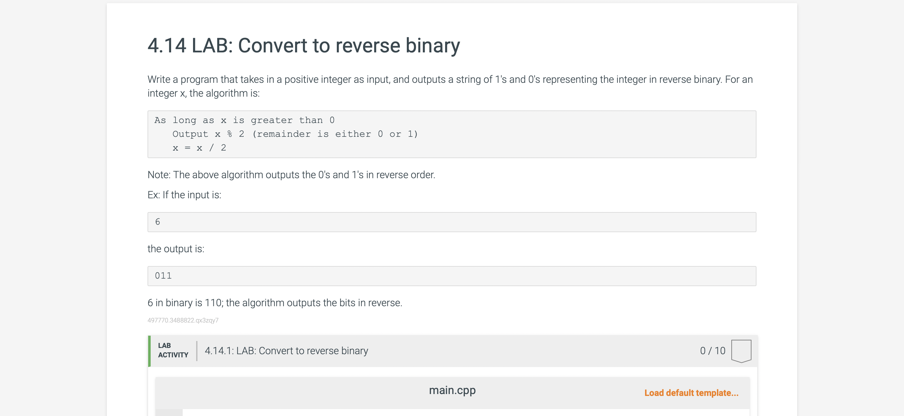 Solved 4.14 LAB Convert to reverse binary Instructor note