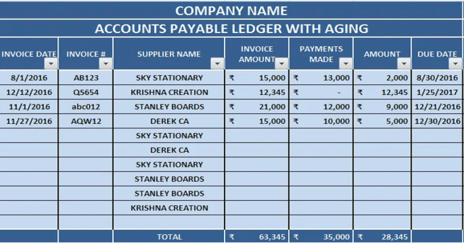 Accounts Payable Aging Report Excel Template - Use this accounts payable (aging) excel spreadsheet to categorize payables to suppliers based on time buckets.