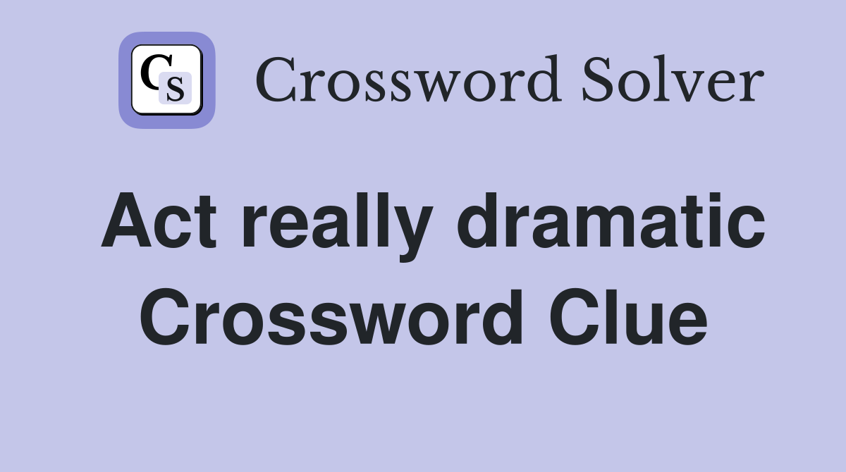 The crossword solver finds answers to classic. The crossword solver finds answers to classic. March 15, 2020 answer of acts dramatically clue in nyt crossword puzzle. The crossword solver found 30 answers to act really dramatic, 7 letters crossword clue. We have found 40 possible answers for this clue in.