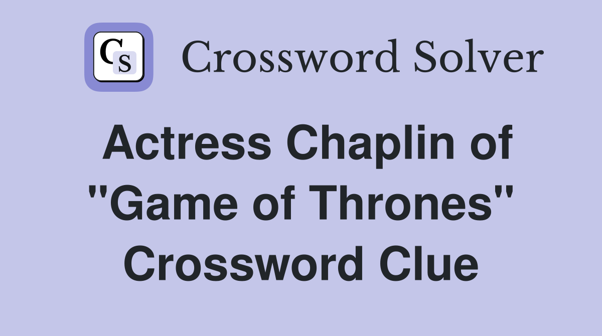 August 25, 2019 answer of game of thrones actress chaplin clue in nyt crossword puzzle. Actress chaplin from game of thrones crossword clue. Here is the solution for the actress chaplin from game of thrones clue featured on june 25, 2023. The crossword solver found 30 answers to actress chaplin of game of thrones, 4 letters crossword clue.