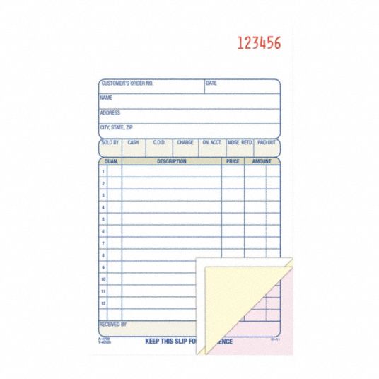 ADAMS BUSINESS FORMS, Book,Carbonless,Sales Form 51LC24TC4705 Grainger