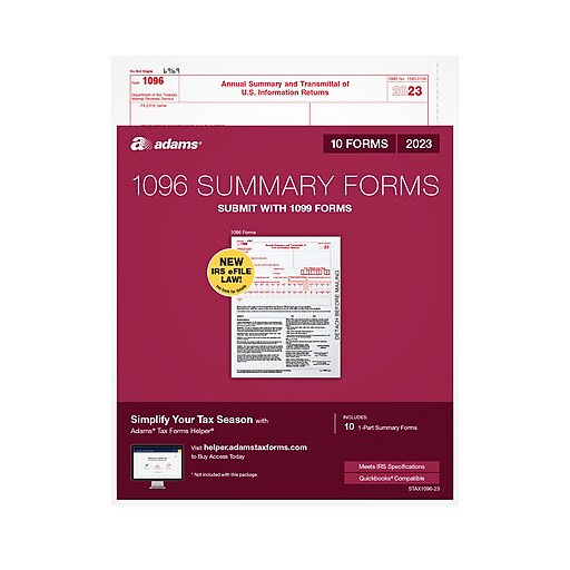 Adams 2023 1096 Summary Tax Forms, 10/Pack (STAX109623) Staples