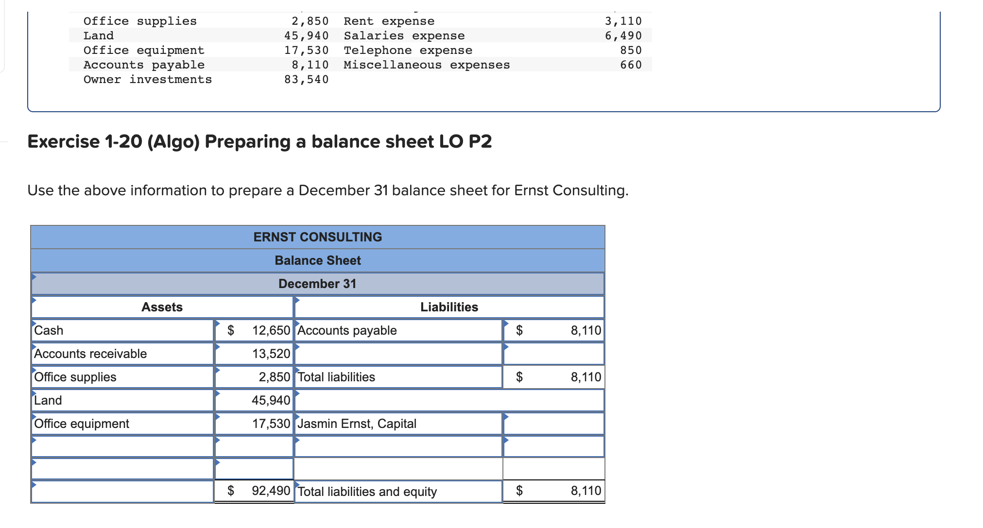 Solved Exercise 120 (Algo) Preparing a balance sheet LO