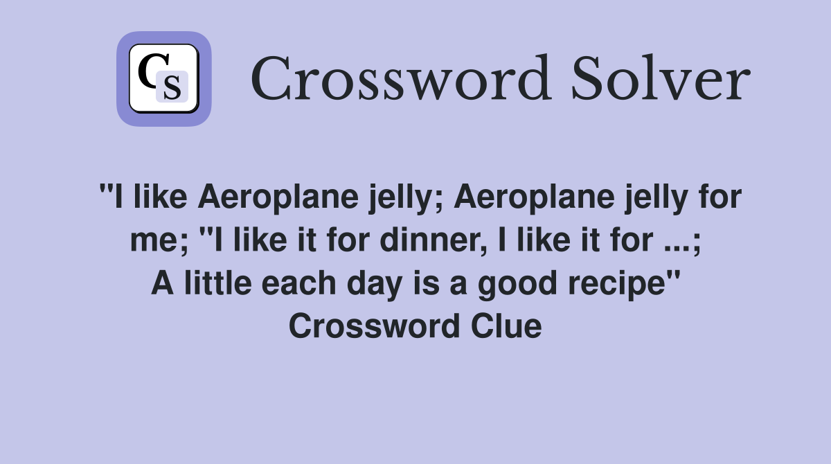 "I like Aeroplane jelly; Aeroplane jelly for me; "I like it for dinner