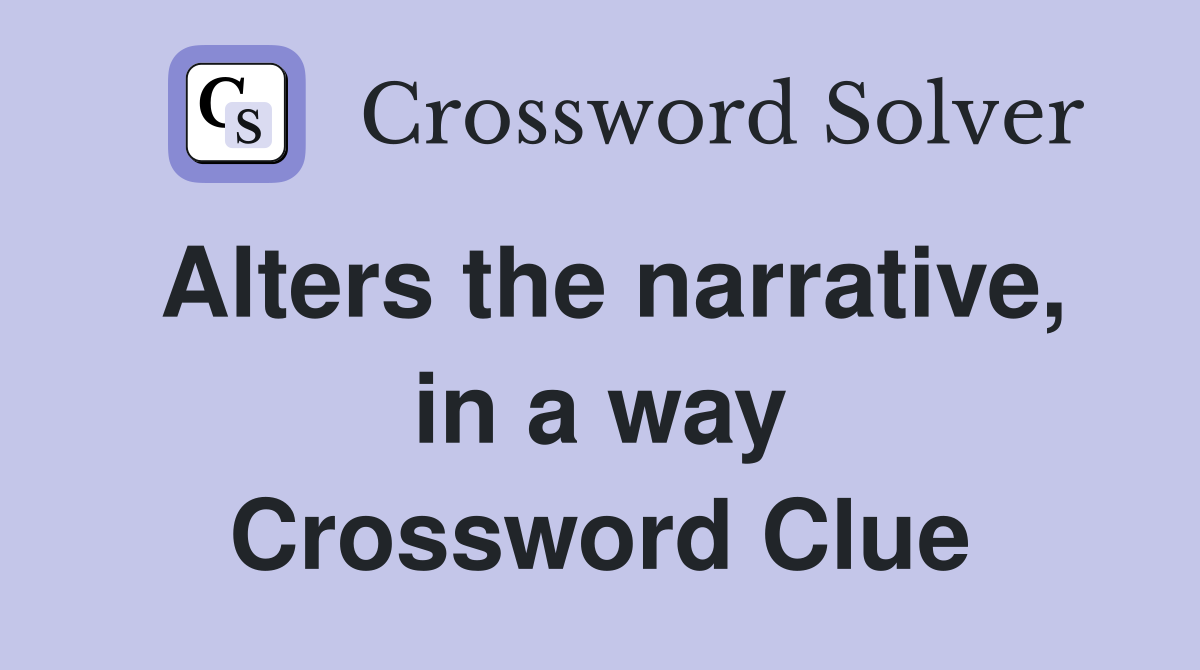 Now, let's get into the answer for alters the narrative, in a way crossword clue most recently seen in the nyt crossword. This clue was last seen on march 15. On this page you will find the alters the narrative in a way crossword clue answers and solutions. If your initial solution didn't match the clue, don't fret! Alters the.