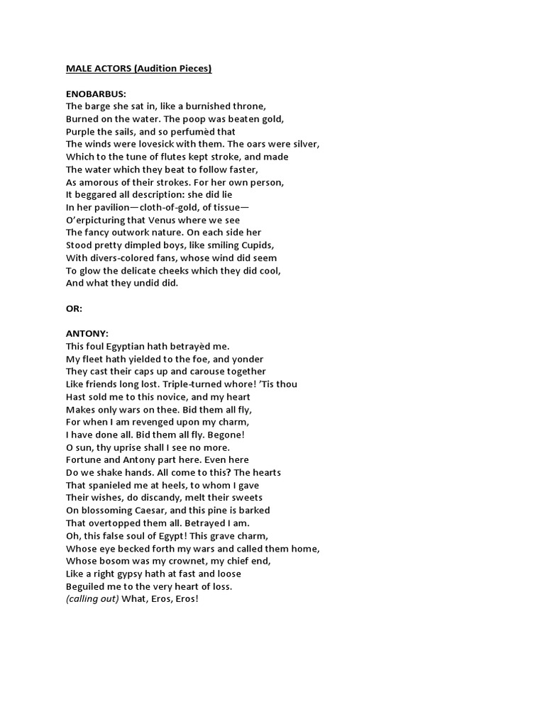 Sweep your way for you. Selected monologues from antony and cleopatra including video examples, context and character information. My treasure's in the harbour, take it. Welcome to opening monologue, your ultimate source for antony and cleopatra monologues!