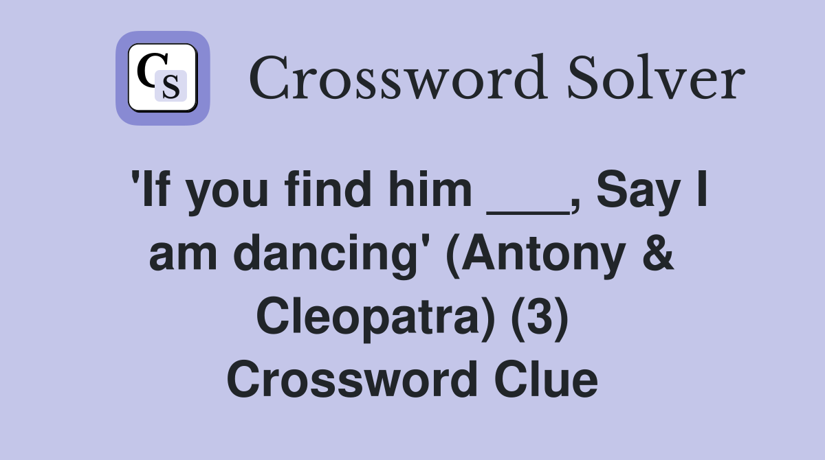 We have found 40 possible answers for. The crossword solver found 30 answers to antony's love, 9 letters crossword clue. Here are the possible solutions for antony's love clue. The crossword solver finds answers to classic. It was last seen in the wall street journal quick crossword.