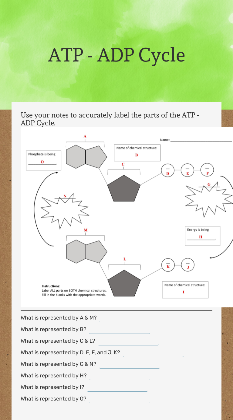 ATP ADP Cycle Interactive Worksheet by Dixie Cox Wizer.me