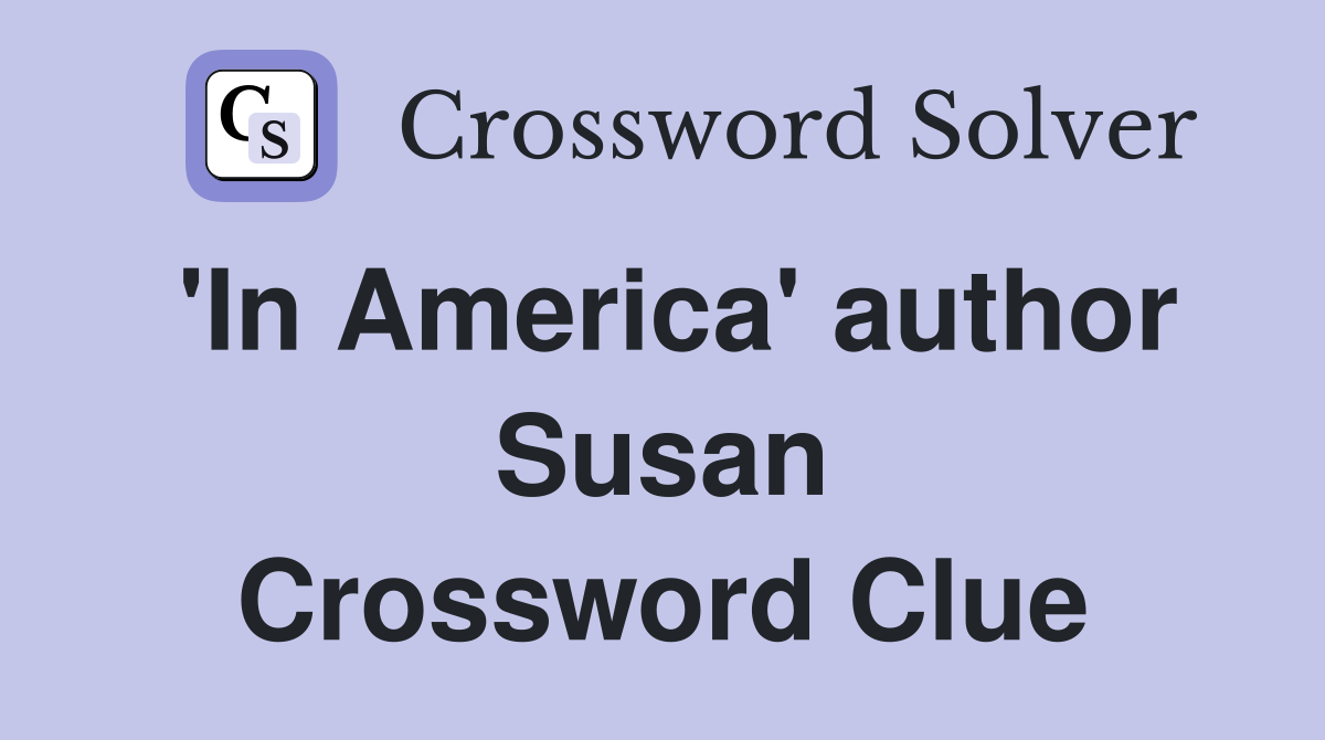 On this page you will find the in america author susan. This clue was last spotted on june 25. It was last seen in new york daily news quick crossword. “in america” author susan crossword clue answer contains 6 letters and has been last seen on december 8 2024 as part of premier. The answer to in america author susan.