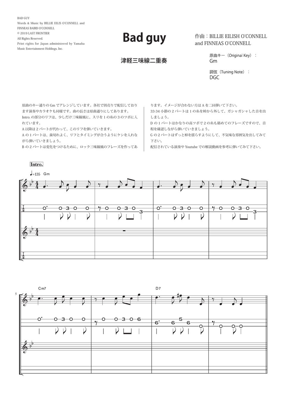 Billie Eilish bad guy(Tsugaru Syamisen Deuxo) (Billie Eilish bad guy