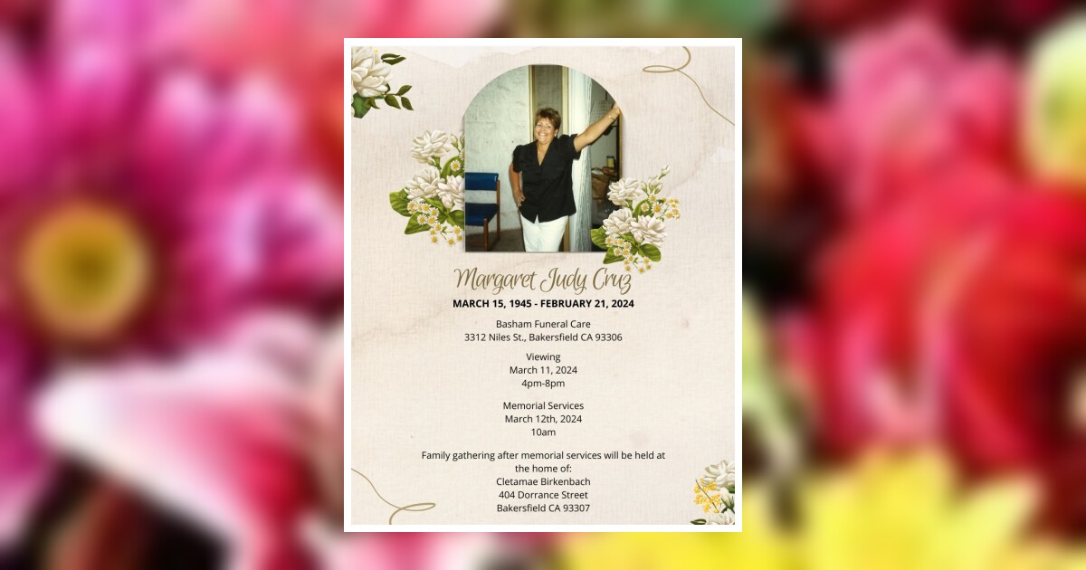 Margaret Judy Cruz Obituary 2024 Basham Funeral Care