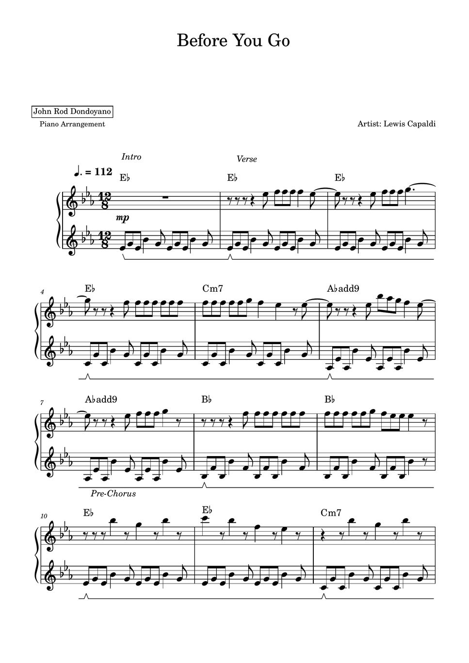 Lewis Capaldi Before You Go (PIANO SHEET) Sheet by John Rod Dondoyano