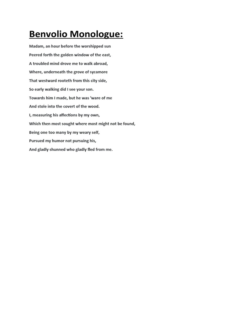 Benvolio Monologue PDF