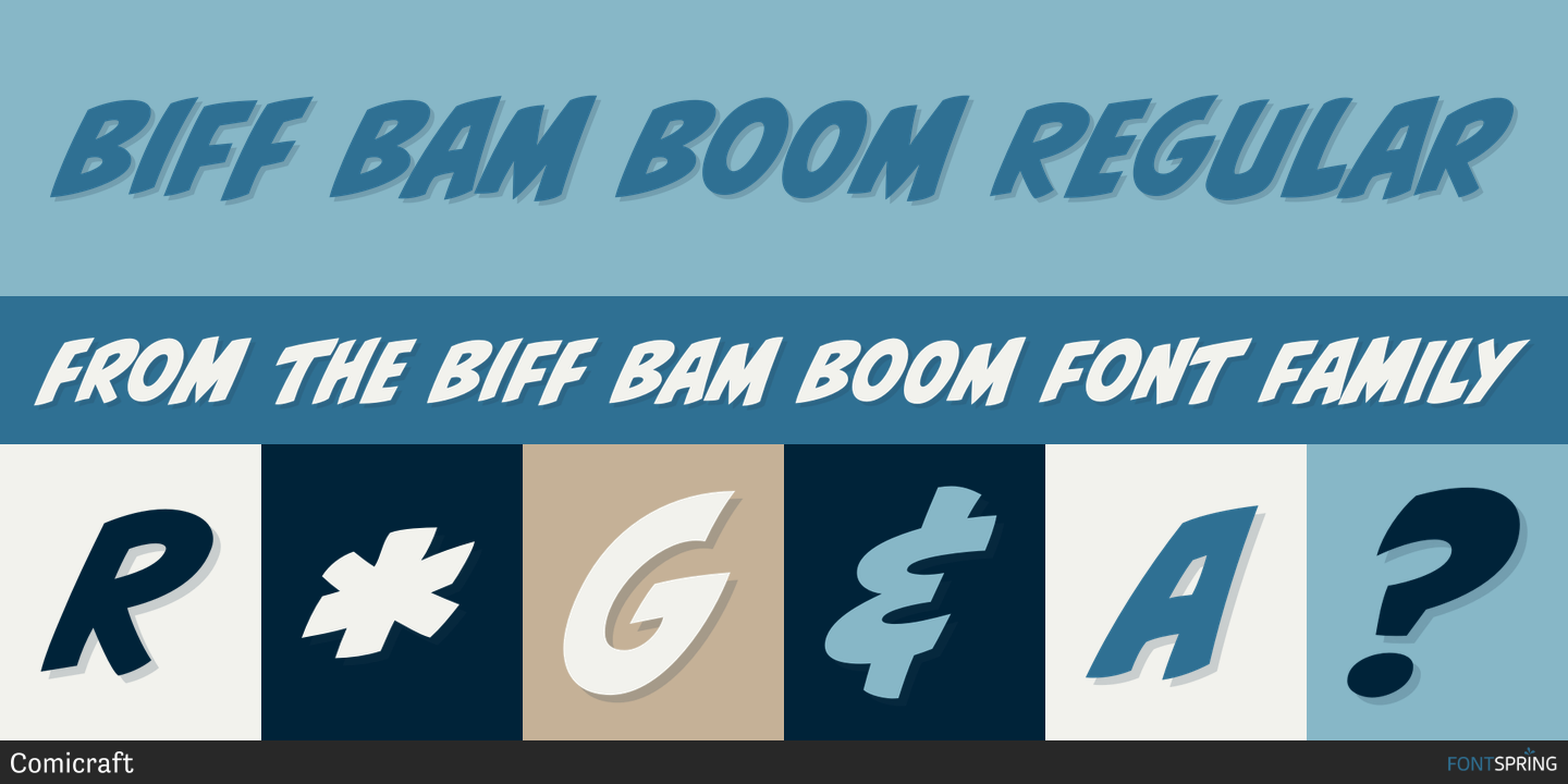 This typeface has two styles and was published by comicraft. Designed by john roshell, biff bam boom is a comic and hand display font family. Inspired by the legendary lettering of comics’. Inspired by the legendary lettering legerdemain of marvel stalwarts, artie simek and sam rosen, biffbamboom is a font you can't take a swing.