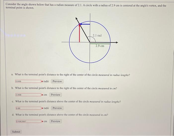 Solved Consider the angle shown below that has a radian