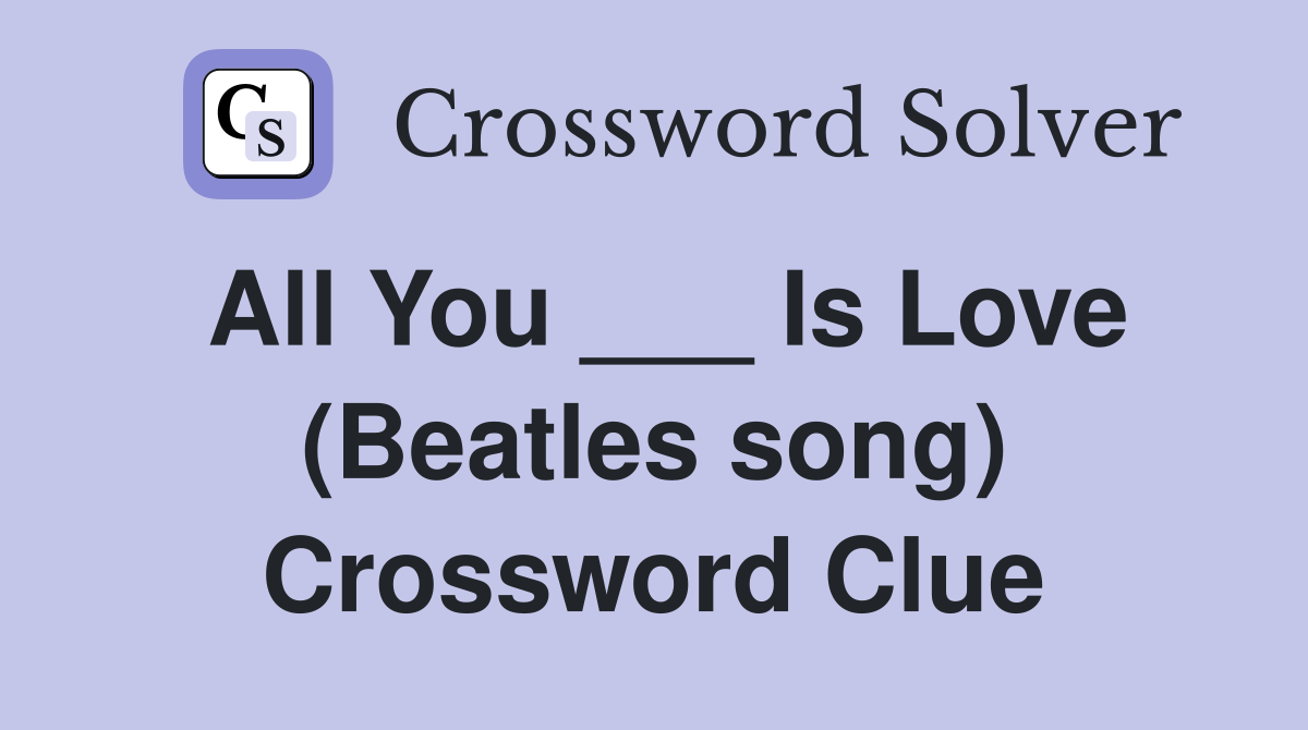 All You ___ Is Love (Beatles song) Crossword Clue Answers Crossword