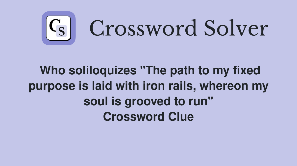Who soliloquizes "The path to my fixed purpose is laid with iron rails
