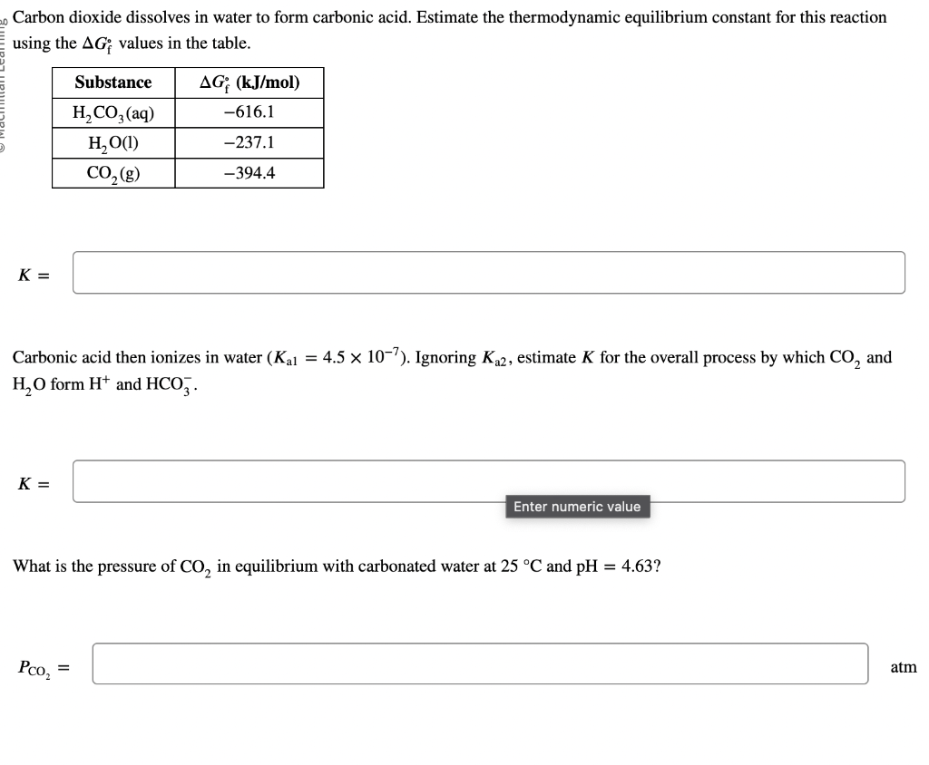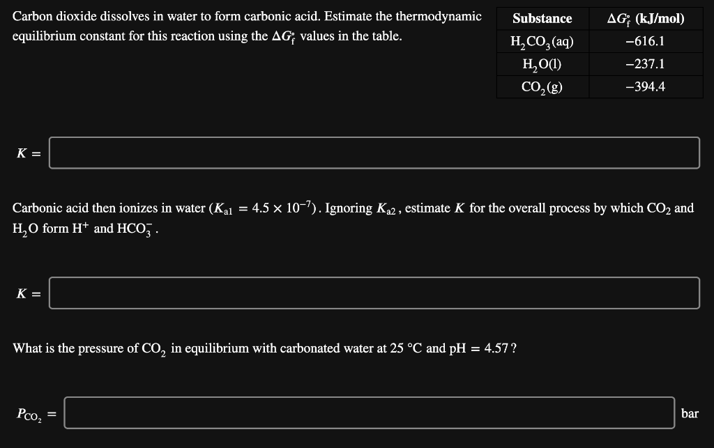 Solved Carbon dioxide dissolves in water to form carbonic