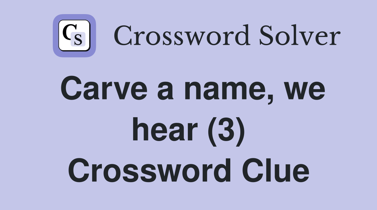 Carve a name, we hear (3) Crossword Clue Answers Crossword Solver
