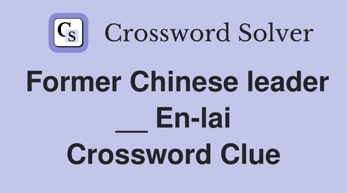 Former Chinese leader __ Enlai Crossword Clue Answers Crossword Solver