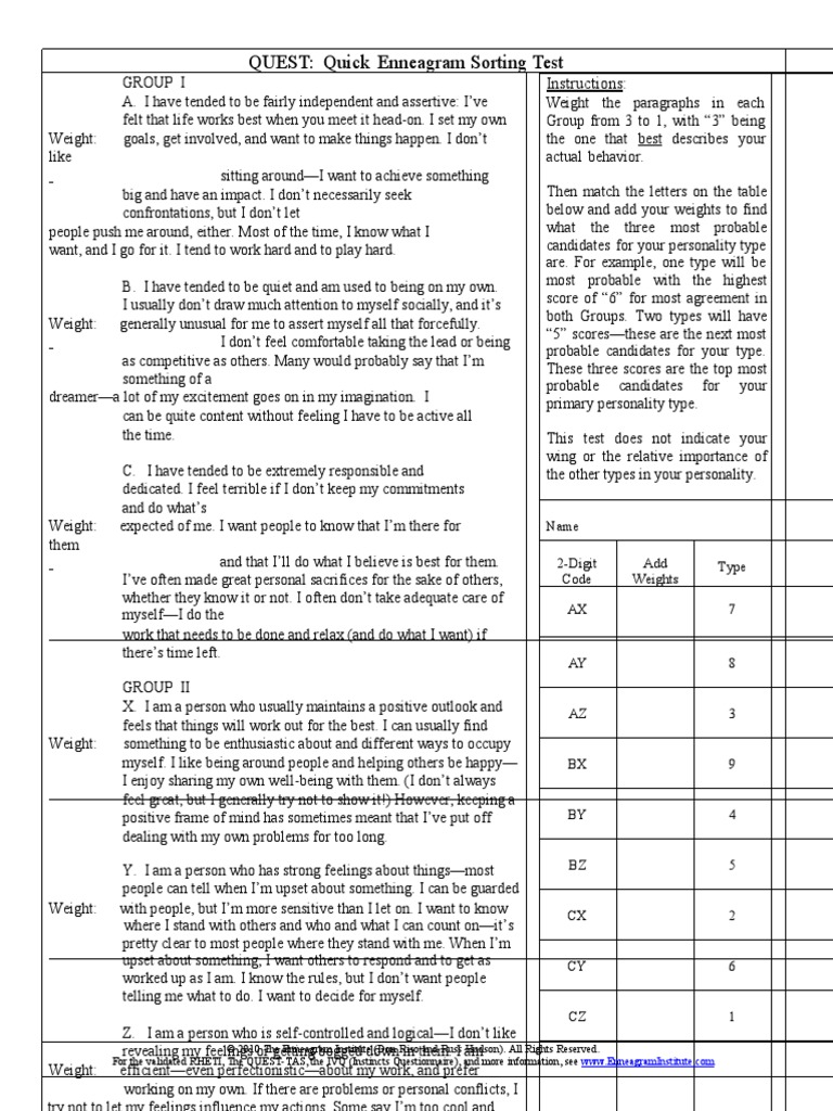 Enneagram Quick Test Behavioural Sciences Psychology & Cognitive