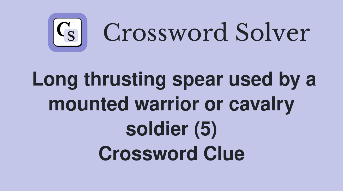 We will try to find the right answer to this particular. The crossword solver found 30 answers to combined spear and battle axe (7), 7 letters crossword clue. The crossword solver found 30 answers to combination spear and battle axe, 7 letters crossword clue. The crossword solver found 30 answers to combination spear and battleax, 7 letters crossword clue. Our.