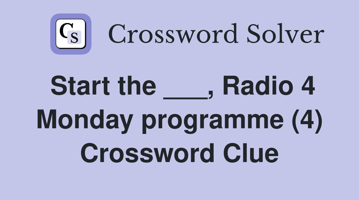Start the ___, Radio 4 Monday programme (4) Crossword Clue Answers