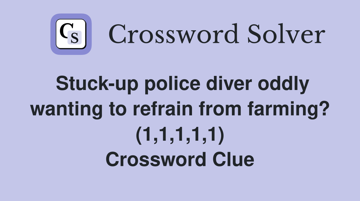 Stuckup police diver oddly wanting to refrain from farming? (1,1,1,1,1