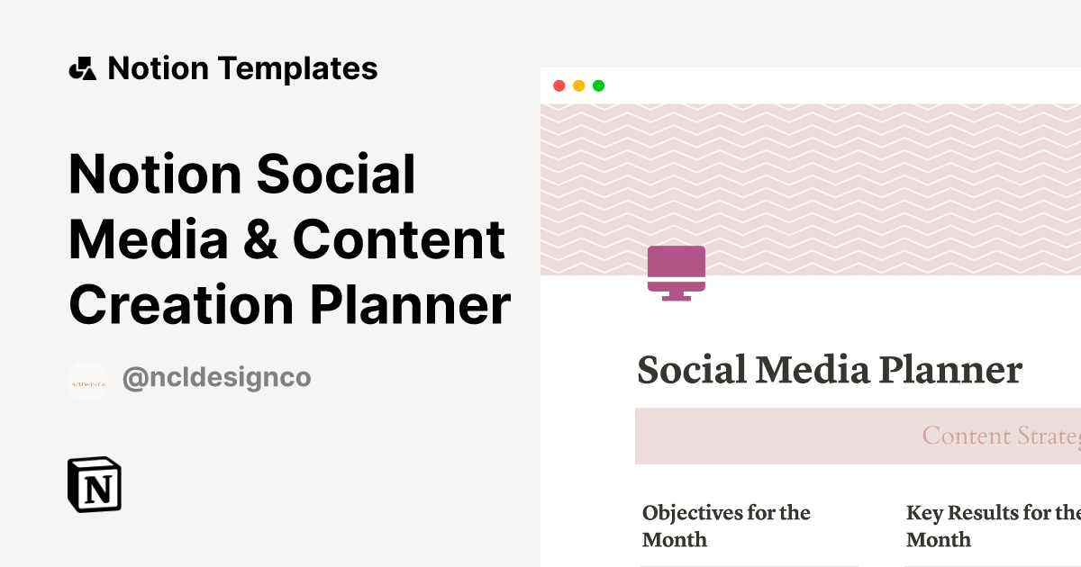 Notion Social Media & Content Creation Planner Template by NCLDesignCo