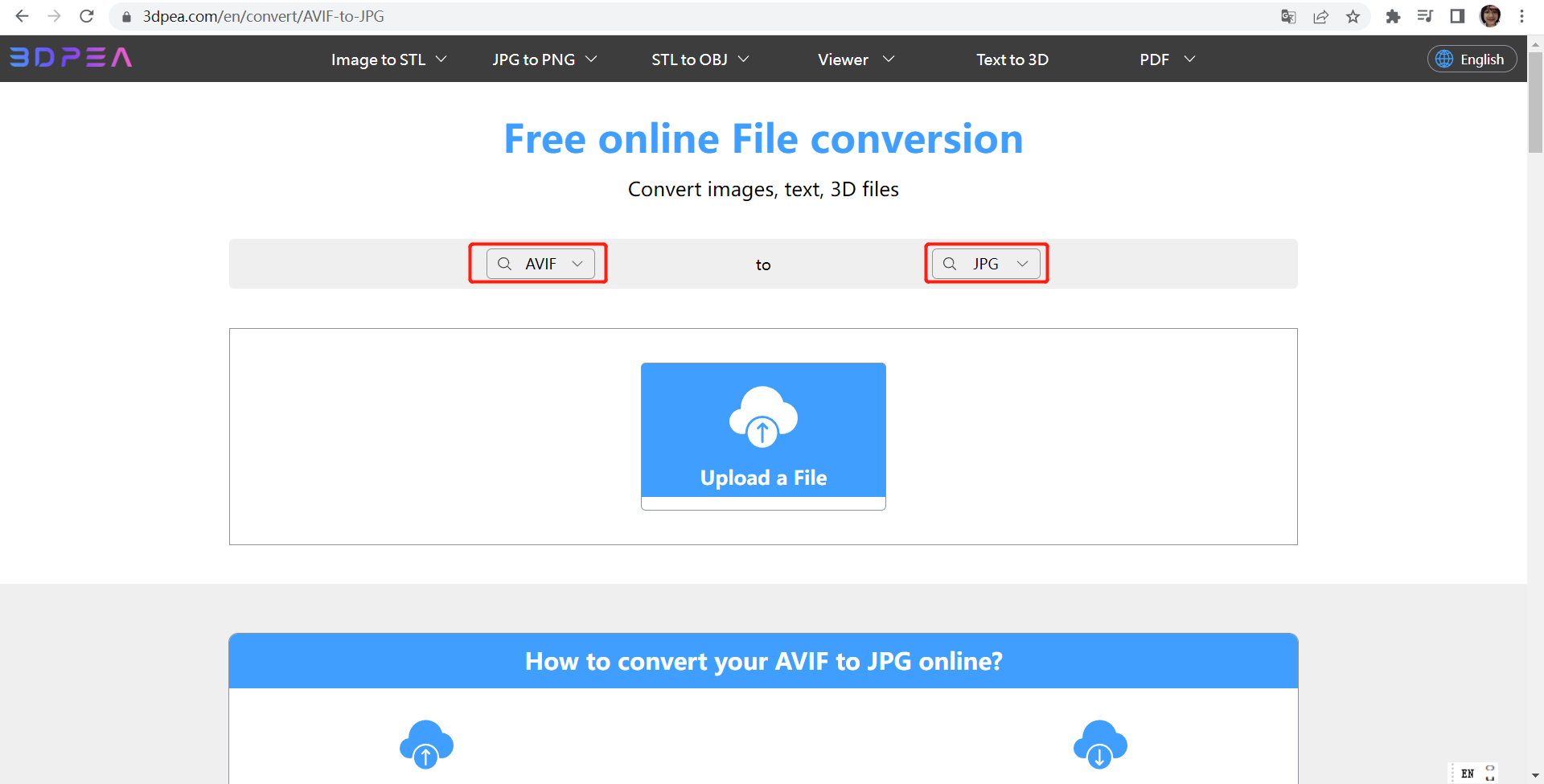 How to convert AVIF to JPG online for free? 3DPEA
