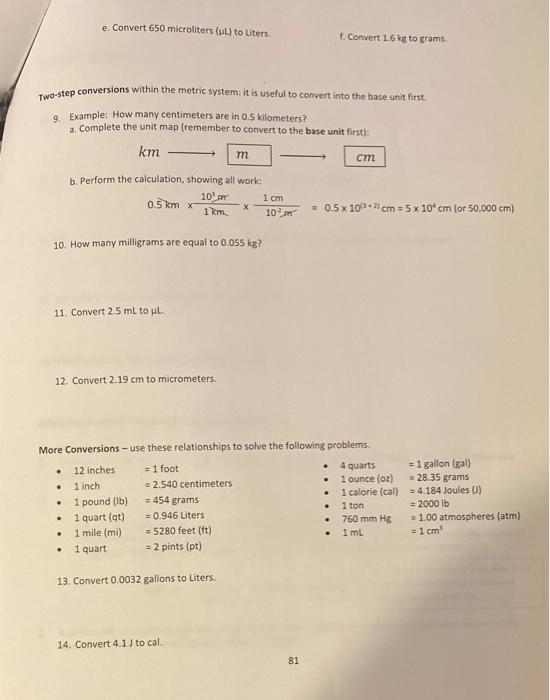 Solved e. Convert 650 microliters (ul) to Liters. Convert 16