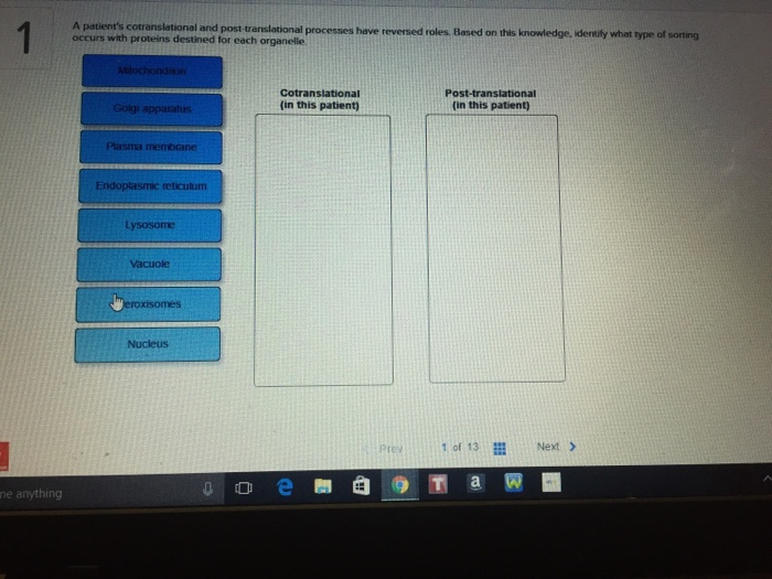 The protein is directly translated in whichever organelle it is eventually destined for. Study order learn with flashcards, games, and more — for free. The first step in cotranslational sorting occurs when the peptide is directed to the endoplasmic reticulum. The first step in cotranslational sorting occurs when the peptide is directed to the endoplasmic reticulum.