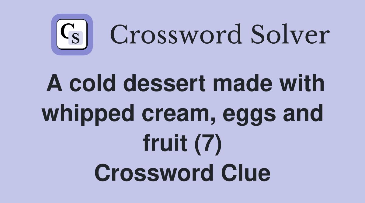 A cold dessert made with whipped cream, eggs and fruit (7) Crossword