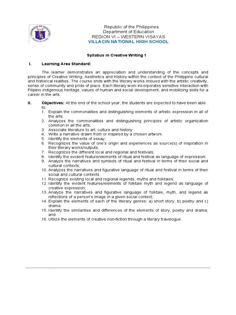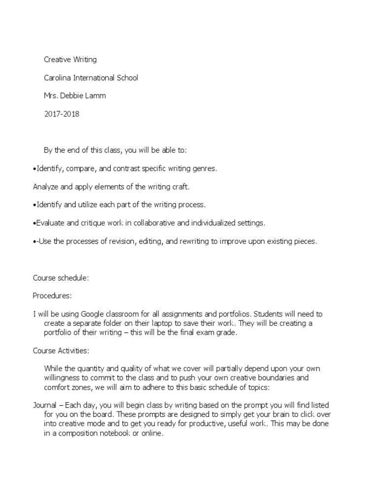 Creative Writing Syllabus PDF Creative Writing Syllabus