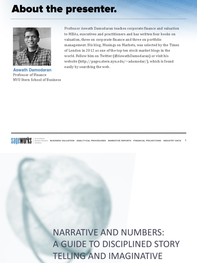 DamodaranPresentation NUMBERS AND NARRATIVE MODELING, STORY TELLING