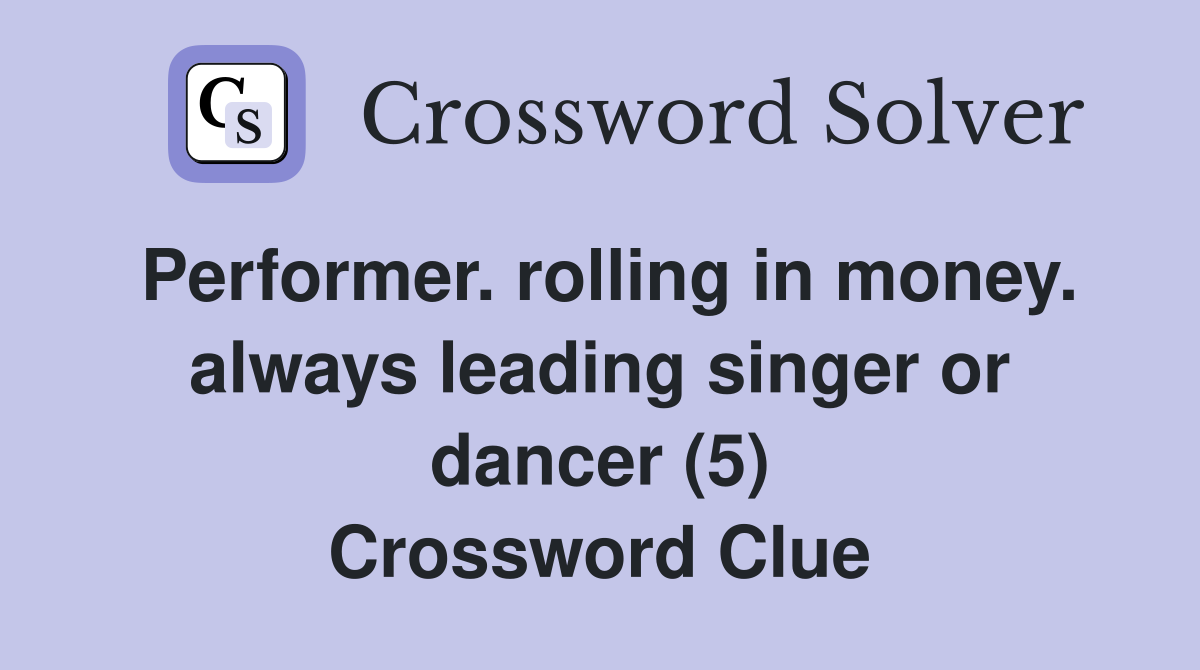 The crossword solver found 30 answers to dancer charisse, 3 letters crossword clue. We have found 40 possible answers for this clue in. Today's crossword puzzle clue is a quick one: The crossword solver finds answers to.