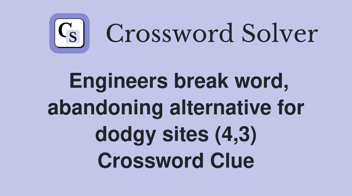 Engineers break word, abandoning alternative for dodgy sites (4,3