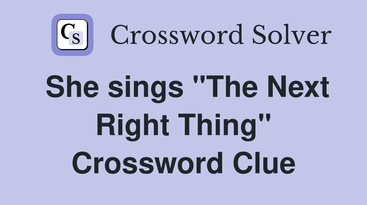 She sings "The Next Right Thing" Crossword Clue Answers Crossword