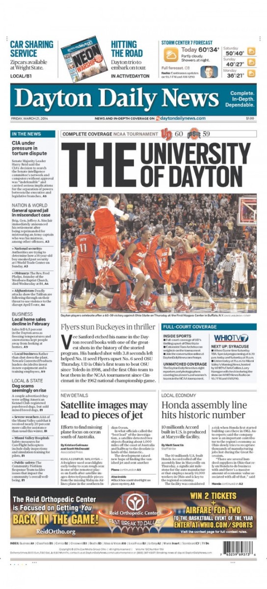 Dayton Daily News front page for March 30, 2015. News Design
