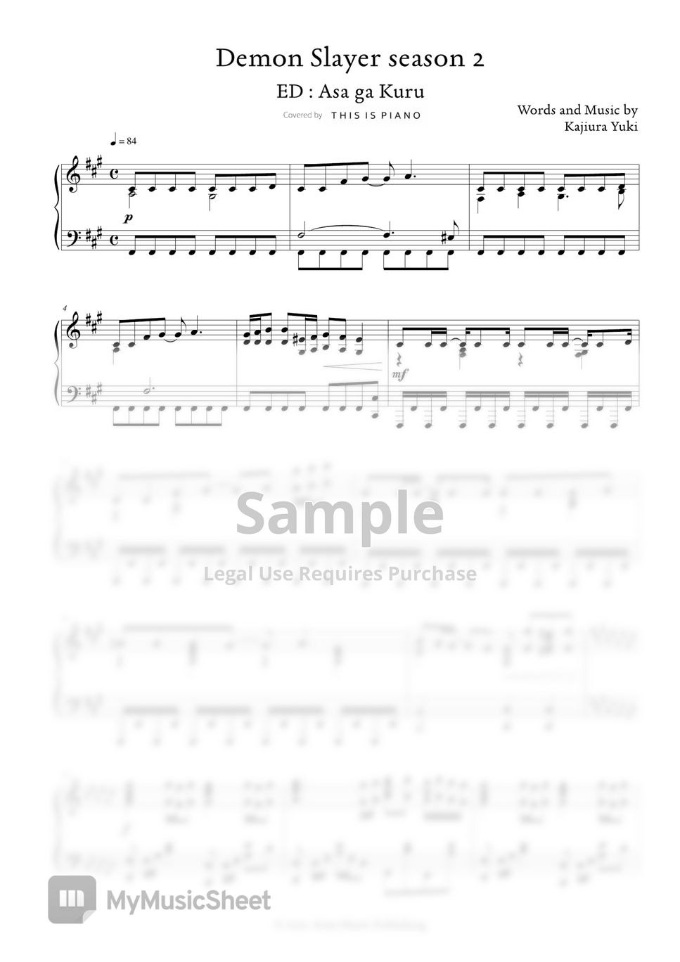 Demon Slayer season 2 asa ga kuru(朝が来る) (Ending Theme) Sheets by THIS