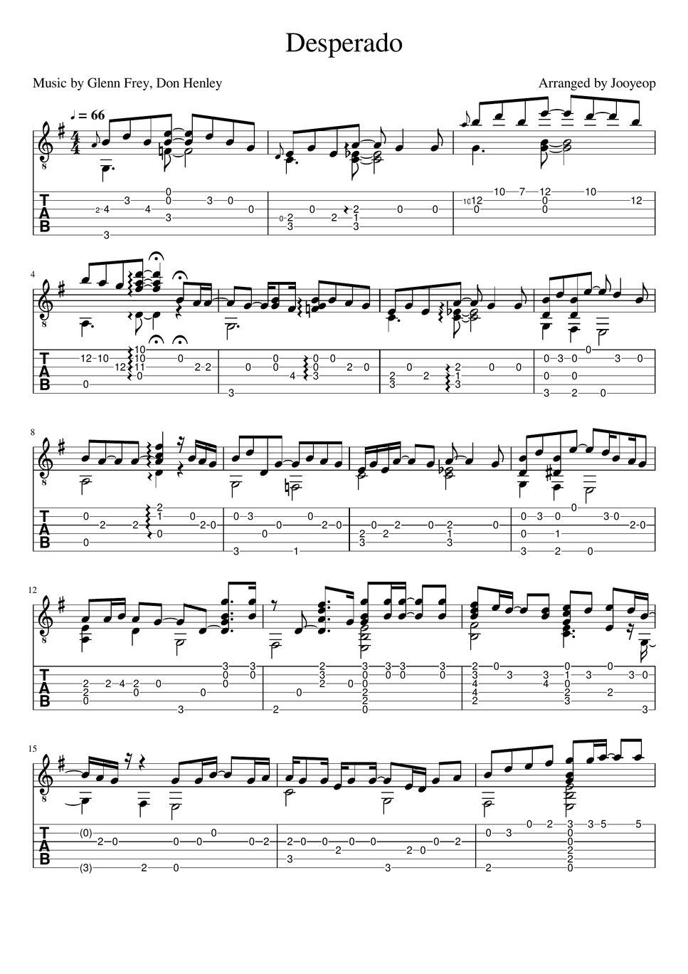 Eagles Desperado Sheet by Anyang Guitar