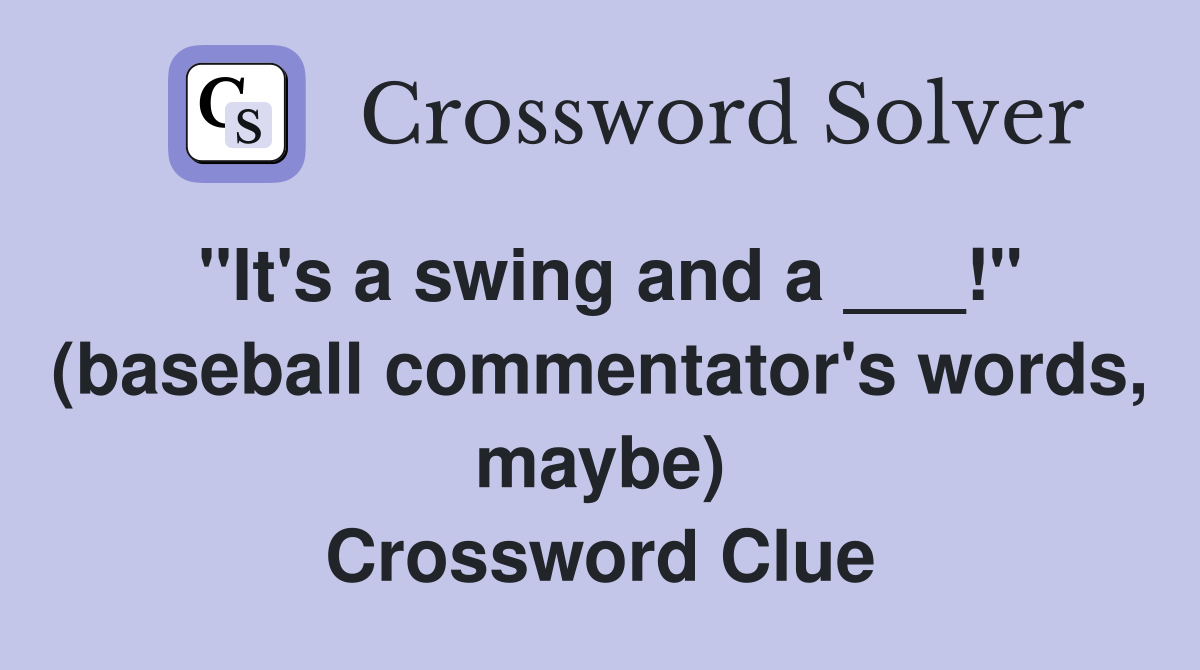 "It's a swing and a ___!" (baseball commentator's words, maybe