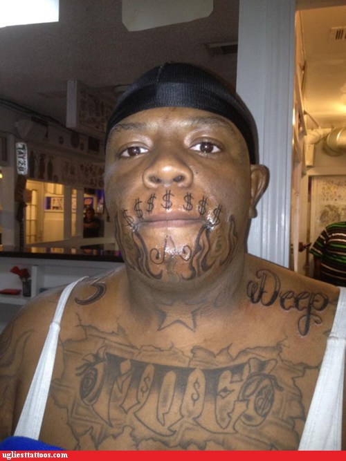 All the Money Symbols on His Face Must Mean He's Rich Ugliest Tattoos