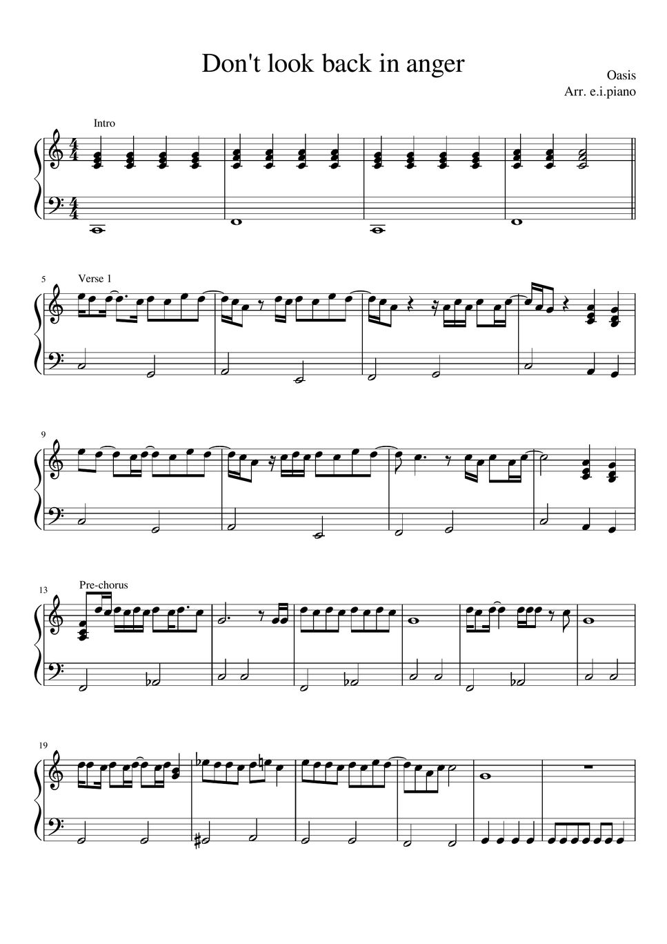 Don T Look Back In Anger Sheet Music - Browse our 29 arrangements of don't look back. Download & print don't look back in anger for. Share, download and print free sheet music of.