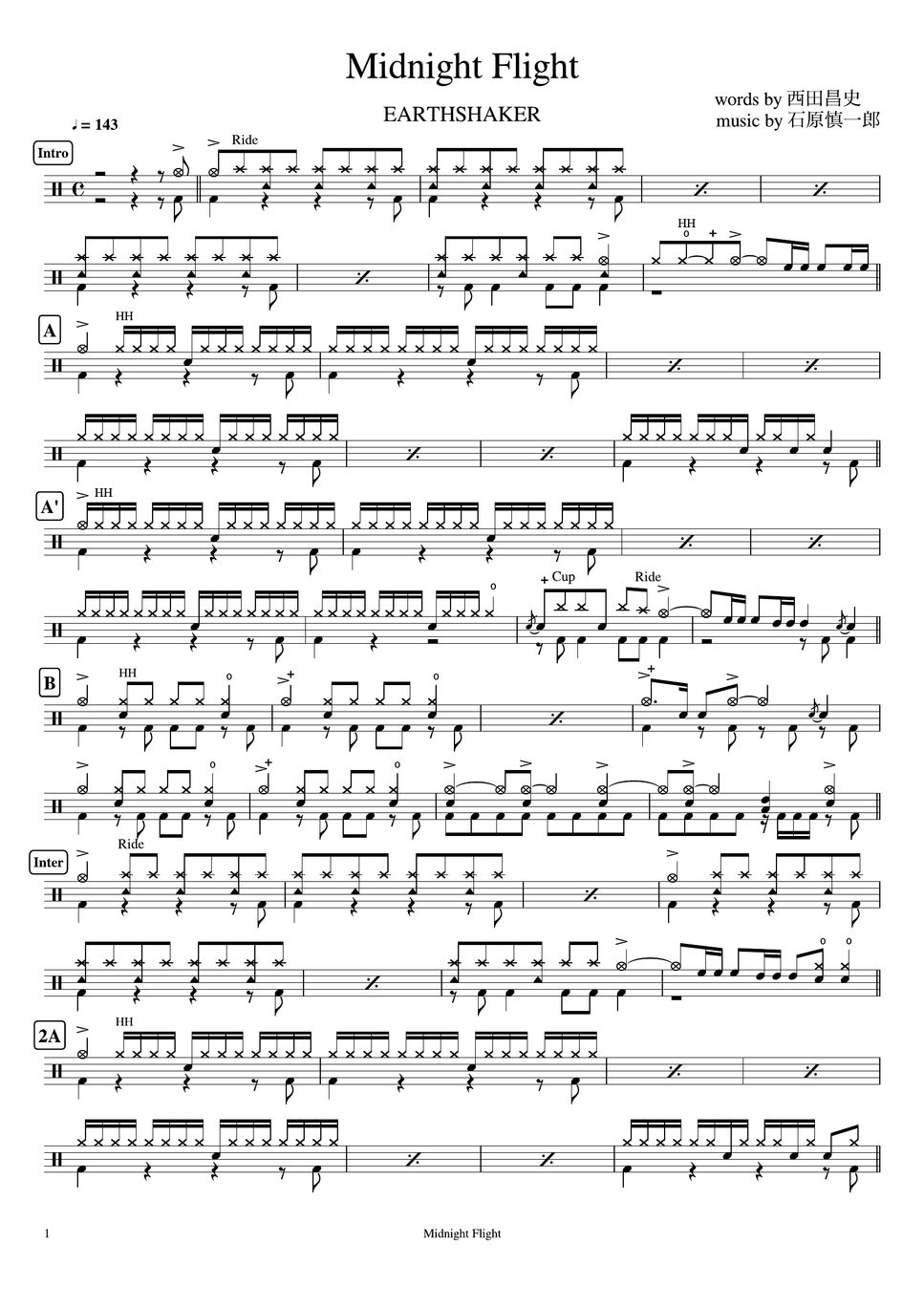 EARTHSHAKER MIDNIGHT FLIGHT Spartito by Cookai's Jpop Drum sheet