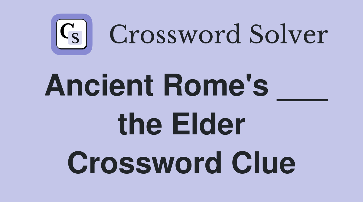 Ancient Rome's ___ the Elder Crossword Clue Answers Crossword Solver