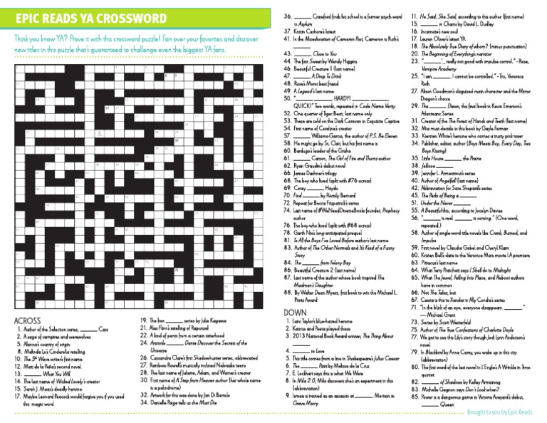 Epic Reads YA Crossword PDF
