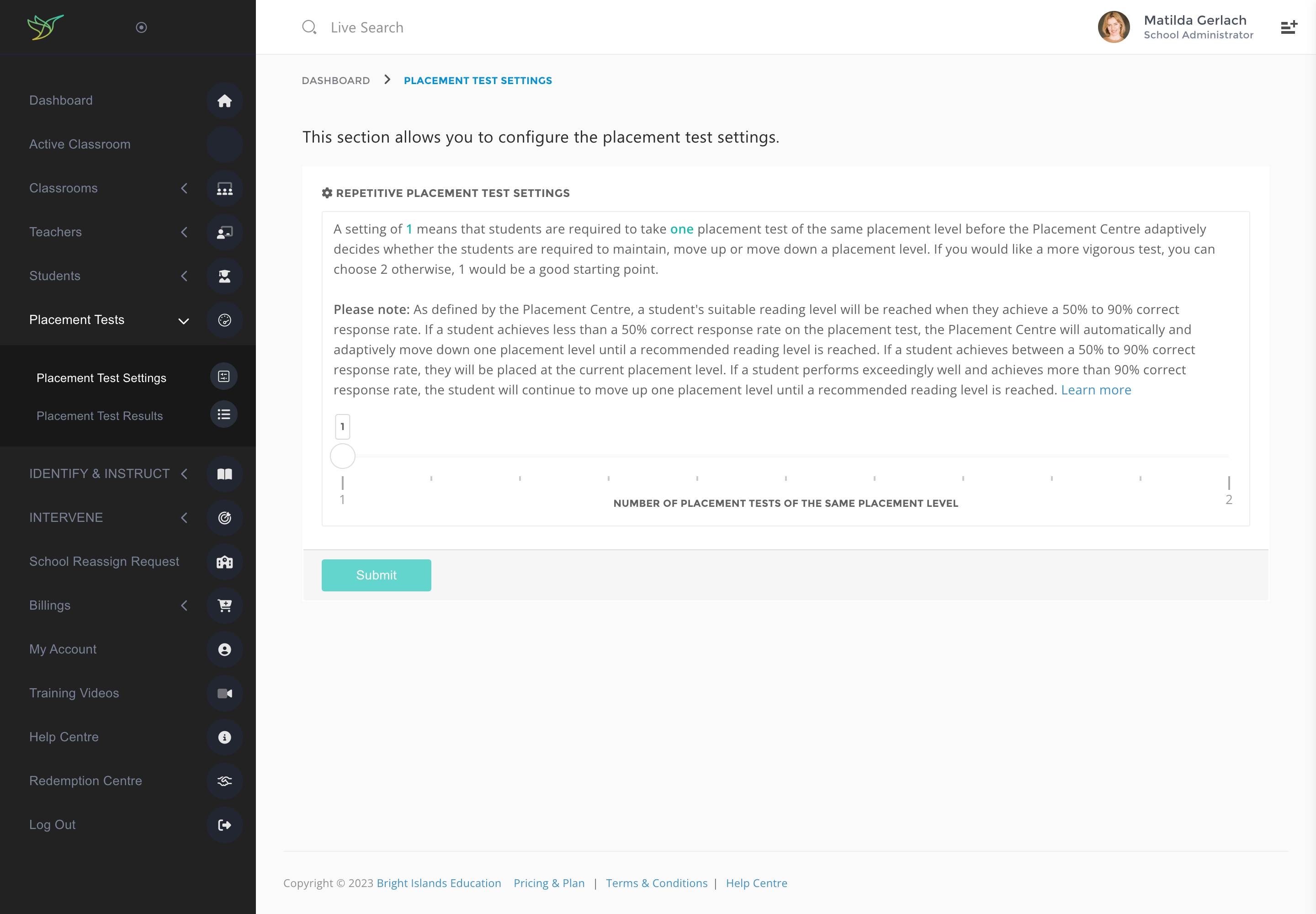 Placement Test Settings Bright Islands CoCo — Help Centre