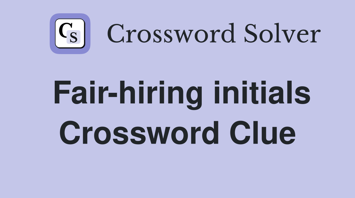 Fair Hiring Initials Crossword Clue - This crossword clue was last seen on november 6 2022 daily themed crossword puzzle. We found the following answers for: This crossword clue was last seen on february 7 2018 daily themed crossword puzzle. All images and logos are property of their. We found the following answers for: We found the following answers for: We are in no way affiliated or endorsed by the publishers that have created the games. This crossword clue was last seen on april 2 2019 daily themed crossword puzzle. We found the following answers for: This crossword clue was last seen on june 2 2023 daily themed crossword puzzle.
