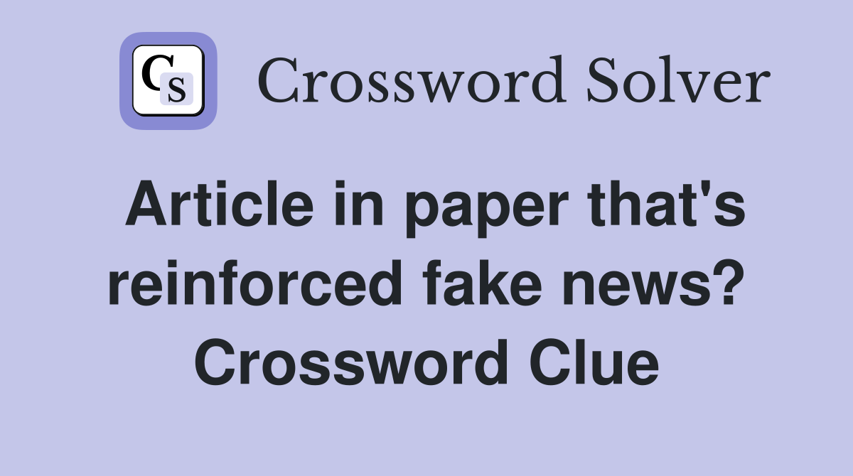 Article in paper that's reinforced fake news? Crossword Clue Answers